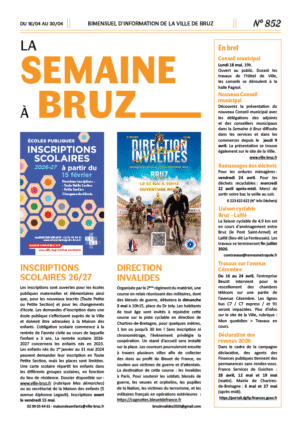 Il paraît une semaine sur deux les jeudis. La Semaine à Bruz est diffusée gratuitement dans les services de la ville et dans vos commerces.